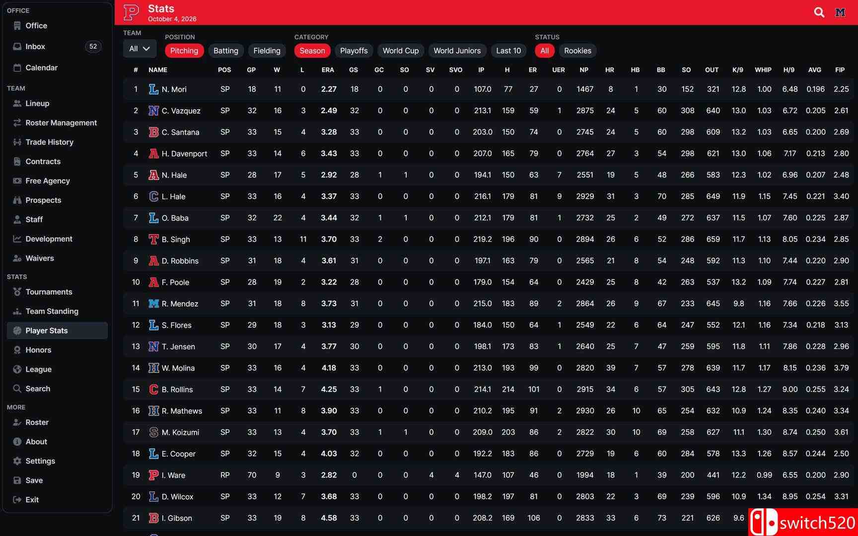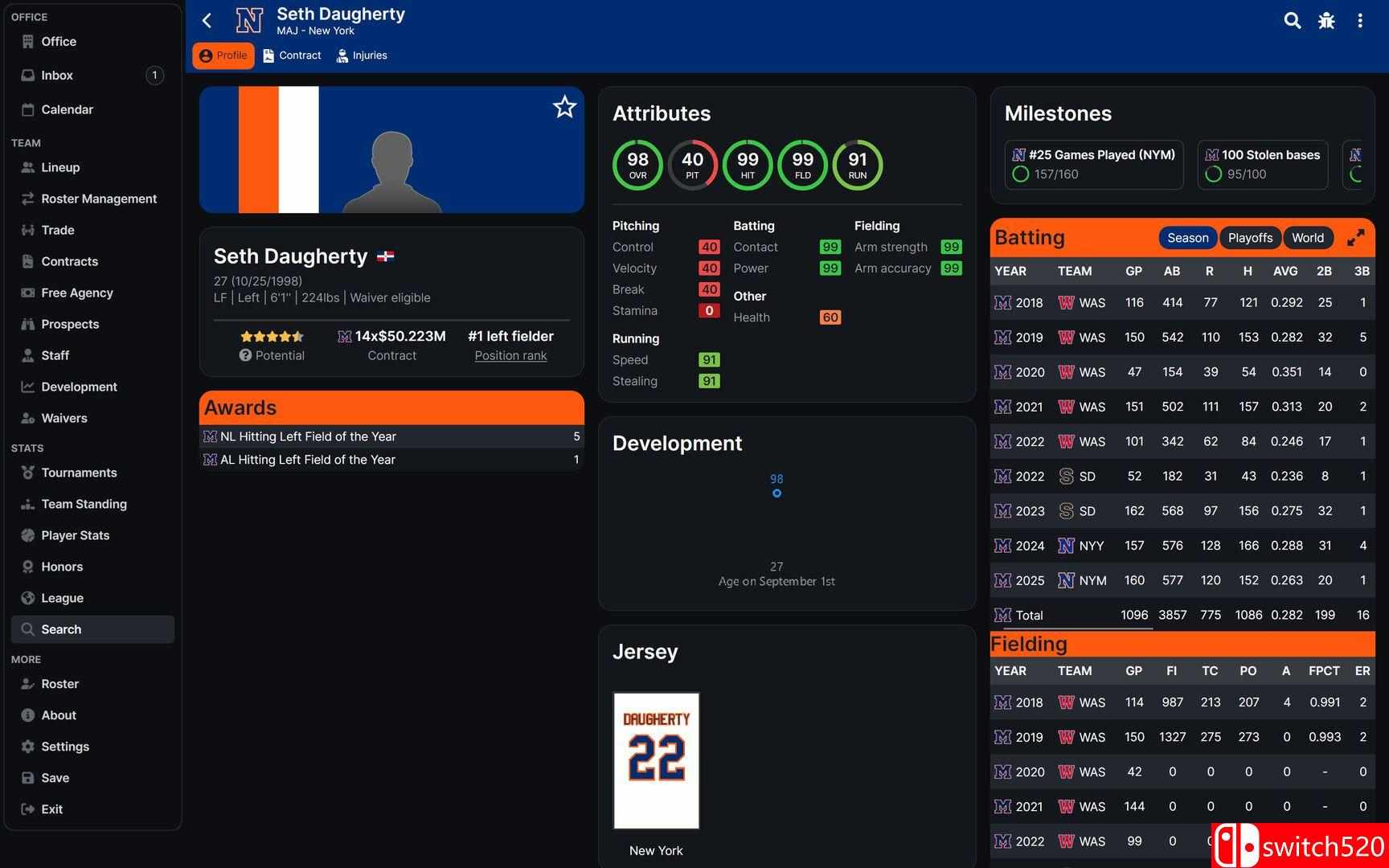 《棒球遗产经理26》是一款体育运动类(SPG)游戏,作为职业棒球队的总经理,打造终极遗产!switch520